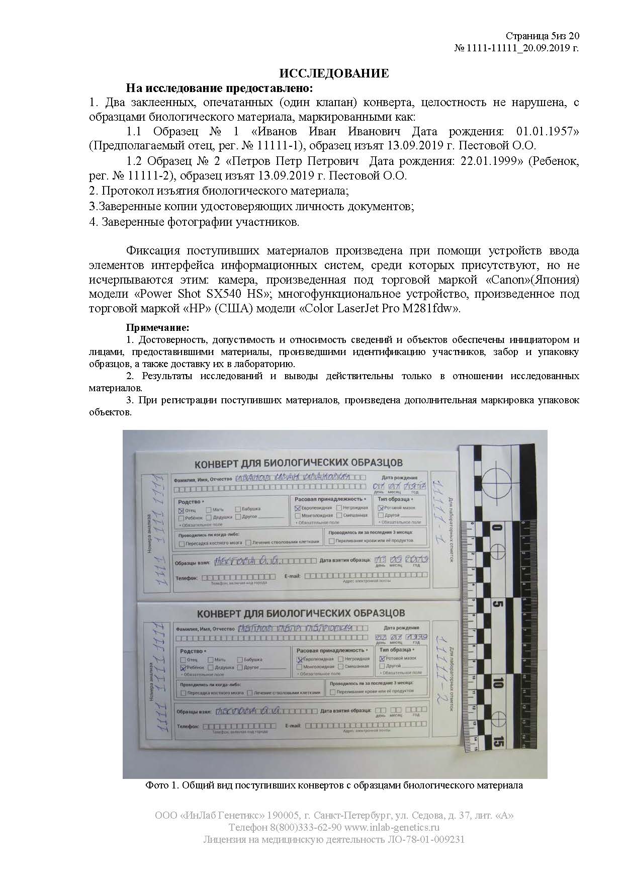 Благодаря использованию самого современного оборудования, проверенных методик и научно-технических разработок судебные ДНК-тесты для установления отцовства мы можем проводить без участия образцов от матери и других дополнительных участников (например, в случае определения отцовства достаточно только предоставить образцы ДНК от отца и ребенка).